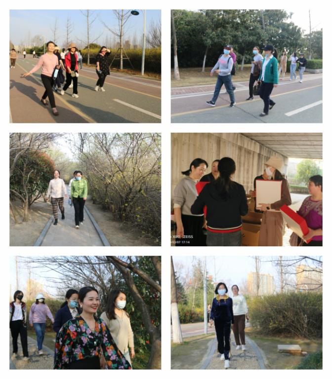 党委委员、工会主席吕爱华和参加活动女教工沿澧河公园河堤步道甩开臂膀,健步向前。大家一边享受着健步走带来的激情活力,一边欣赏公园春意盎然的景色,每个人的脸上都洋溢着喜悦与快乐,享受着健康运动带来的身心愉悦。所有参加活动的女同志们都坚持走完全程,顺利到达终点。