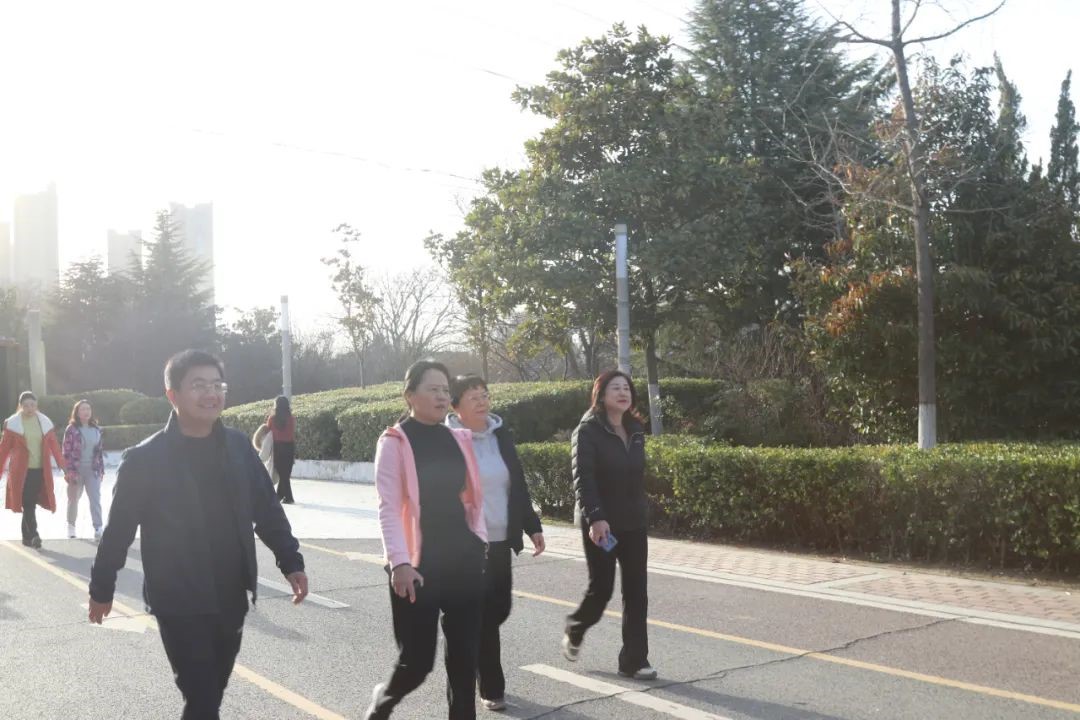 他们和参加活动的女教工们沿河堤步道健步快走,精神抖擞,身姿矫健,大家呼吸着清新的空气,享受着健步走带来的喜悦与快乐,有说有笑,气氛轻松融洽,大家都坚持走完了全程,顺利到达终点。