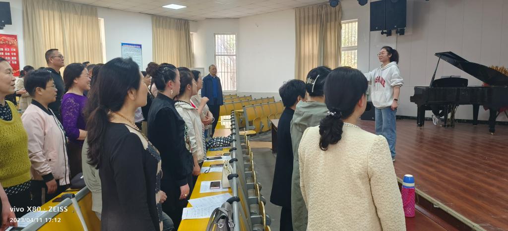2023年4月11日教职工合唱队在音乐舞蹈系小礼堂进行了成立后的第一次合唱培训,并聘请音乐舞蹈系具有丰富经验的专业声乐老师吉梦老师进行指导。学院工会主席吕爱华、工会副主席夏俊华等和来自各部门的30余名教职工一起参加了培训。