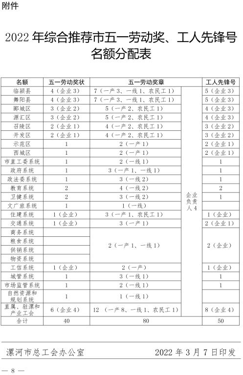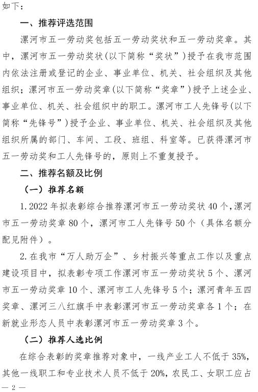 关于推荐评选2022年漯河市五一劳动奖和工人先锋号的通知